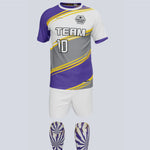 "Step up to the plate with our Custom 'Swing' soccer uniform set! This dynamic ensemble is ready to hit it out of the park, fully customizable to match your team's distinct style. Whether you're dribbling down the field or going for a goal, this awesome custom soccer uniform will exceed your expectations. Unleash your creativity and design a look that's uniquely yours, amplifying your team's spirit and taking your team pride to new heights. With customizable jerseys and socks, you'll stand out on and off the field. And with advanced moisture-wicking technology, you can stay cool, dry, and focused, maintaining your winning momentum. Don't just play the game, own it with our 'Swing' soccer uniform set!"