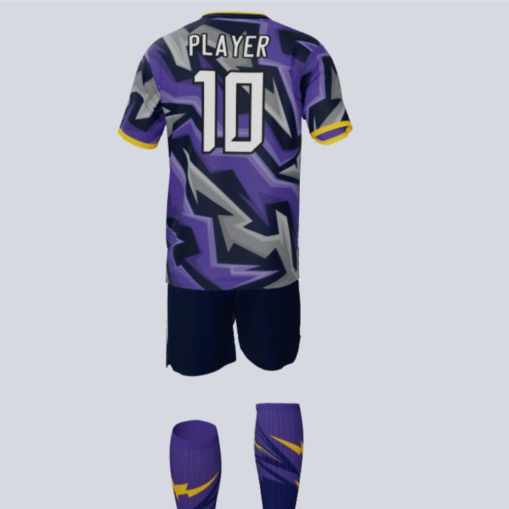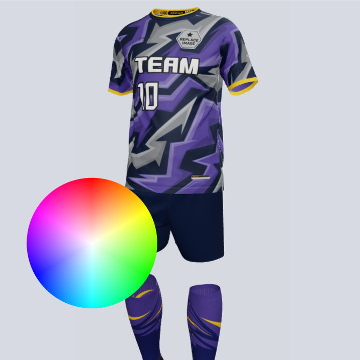 "Unleash the power of your team with our Custom 'Sabre' soccer uniform set! This cutting-edge ensemble is fully customizable, allowing you to create a design that reflects your team's fierce individuality. Trust that investing in this incredible custom soccer uniform will be a winning decision. Let your creativity soar as you design jerseys and socks that elevate your team's image and take your team pride to new heights. With advanced moisture-wicking technology, our uniforms keep you cool under pressure, ensuring optimal performance on the field. Embrace the 'Sabre' spirit, leave your opponents in awe, and conquer the game with style and confidence!"