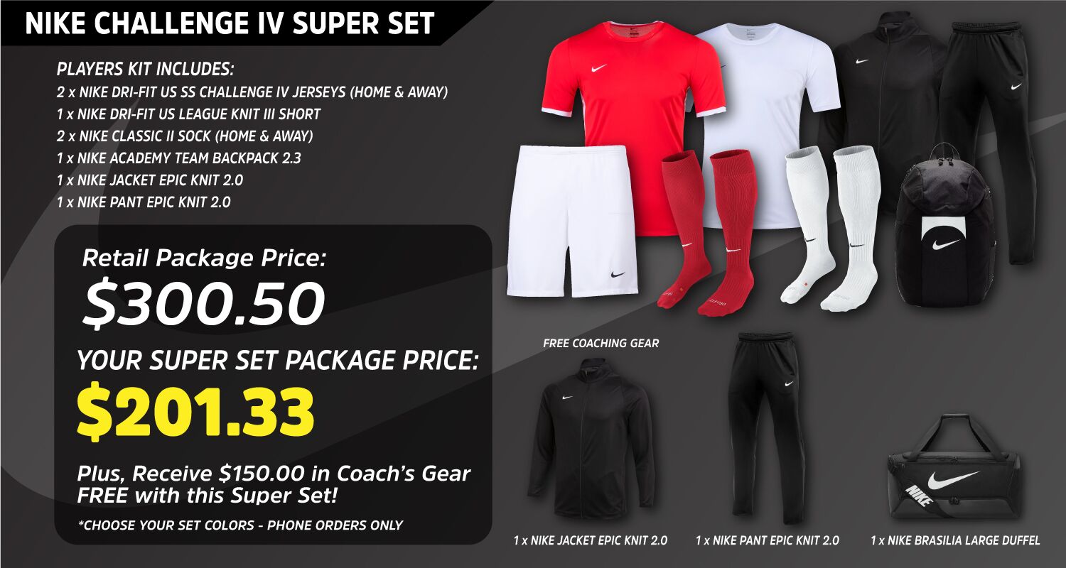 Our sets include everything your team needs – jerseys, shorts, socks, jackets, pants, bags, and more – all at unbeatable prices.