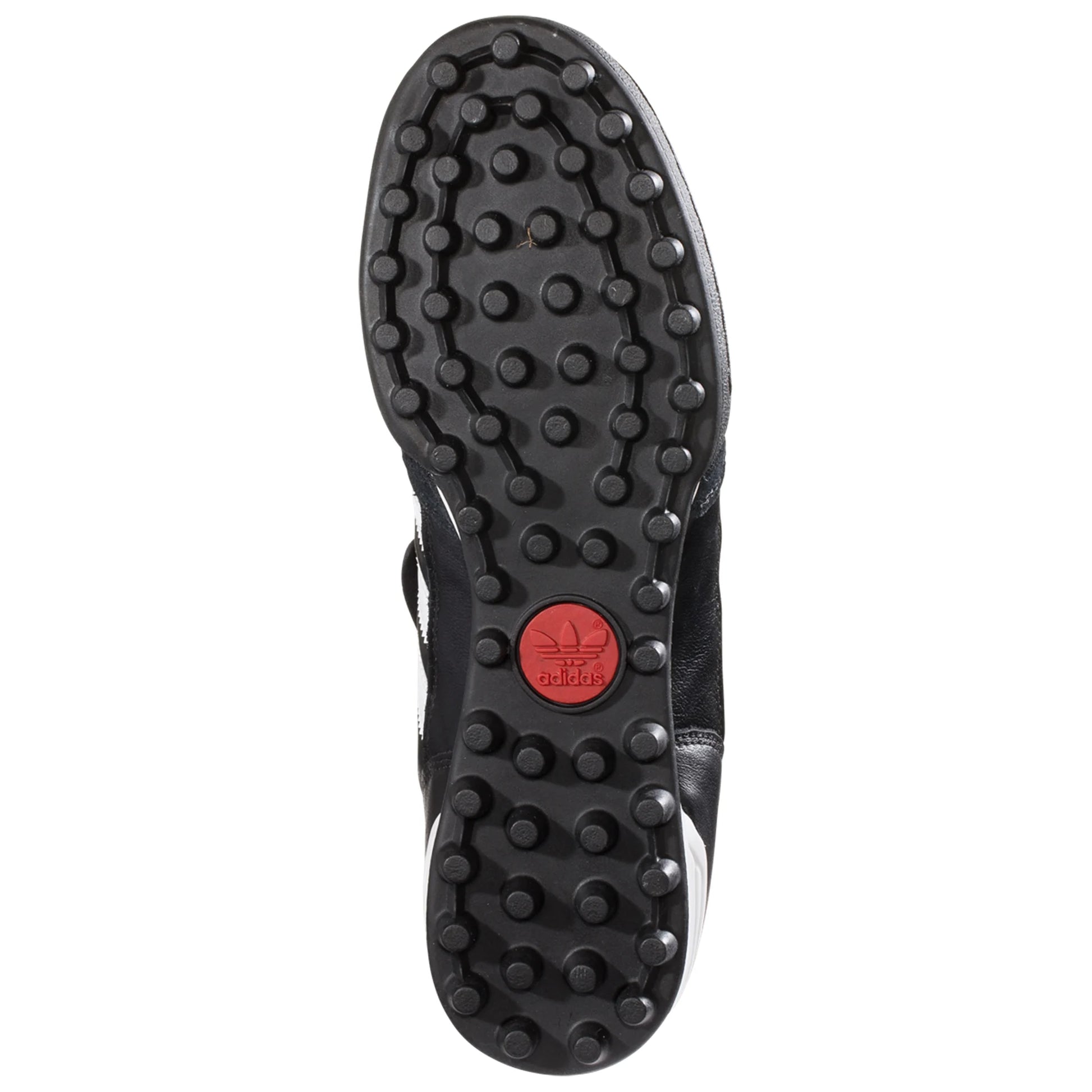 Inside, a cushioned EVA midsole absorbs impact and reduces pressure on the feet, ensuring long-lasting comfort during intense matches or training sessions. The traditional design, featuring the iconic Adidas Three Stripes and classic black-and-white color scheme, adds a timeless aesthetic to your game.