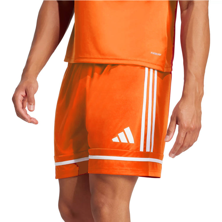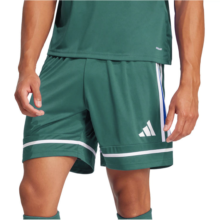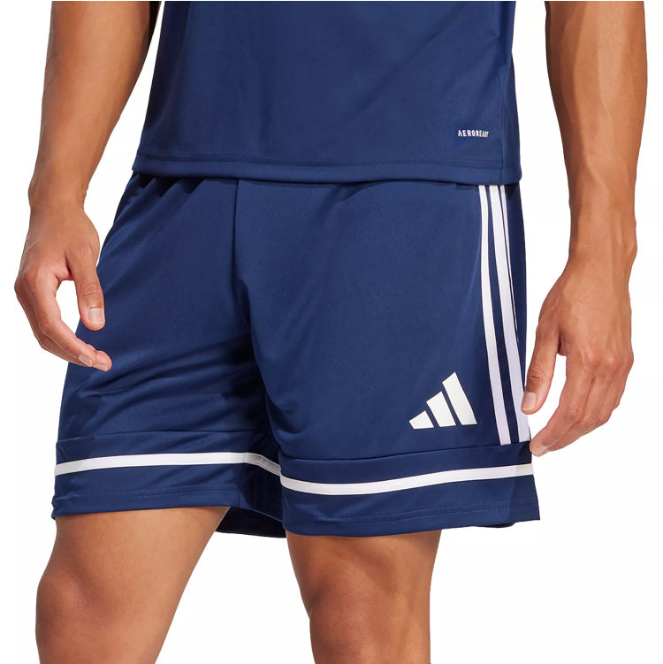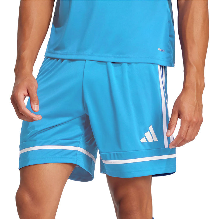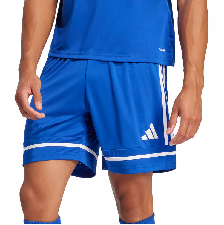Look and play like a true team in adidas Squadra 25 Short, designed for ultimate performance and unmatched style on the field. Featuring a drawstring waist for a customized fit and moisture-wicking AEROREADY technology, these shorts keep you dry and comfortable throughout every crucial tackle and precise strike. Whether you're training or competing, the adidas Squadra 25 Short delivers the reliability you need. Pair them with the Squadra 25 jersey for a complete, professional appearance that turns heads. Made from 100% recycled materials, these shorts help reduce waste and reliance on finite resources, supporting sustainability. Enjoy a regular fit with an elastic waistband for added flexibility and confidence during play.