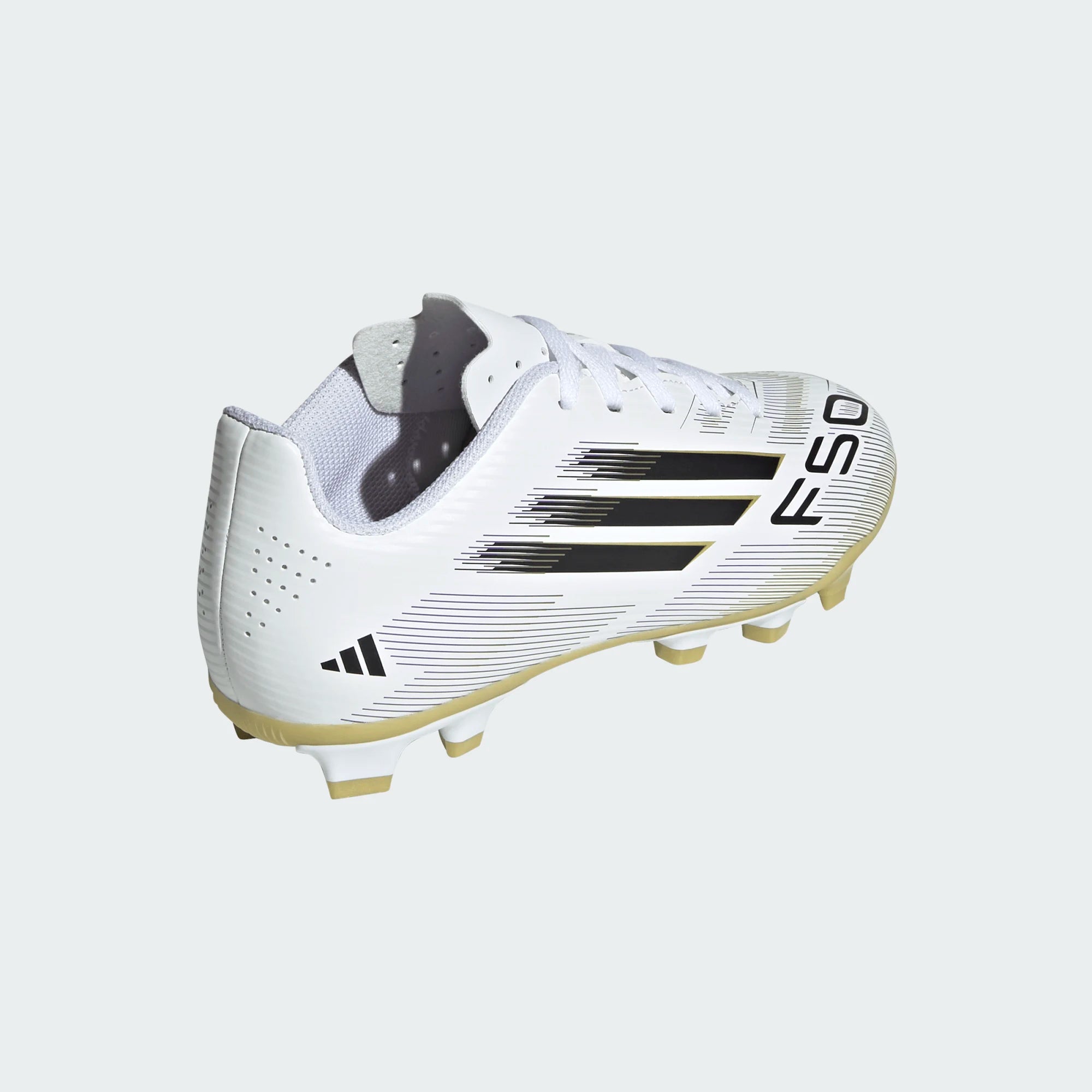 Push your pace to the limit in lightweight adidas F50 footwear engineered for speed. These juniors' Club football boots keep you comfortable on the move with a supportive Fiberskin upper and perforated tongue. Underneath, a versatile outsole propels you to lightning-fast play on firm ground and artificial grass surfaces. This product features at least 20% recycled materials. By reusing materials that have already been created, we help to reduce waste and our reliance on finite resources and reduce the footprint of the products we make.