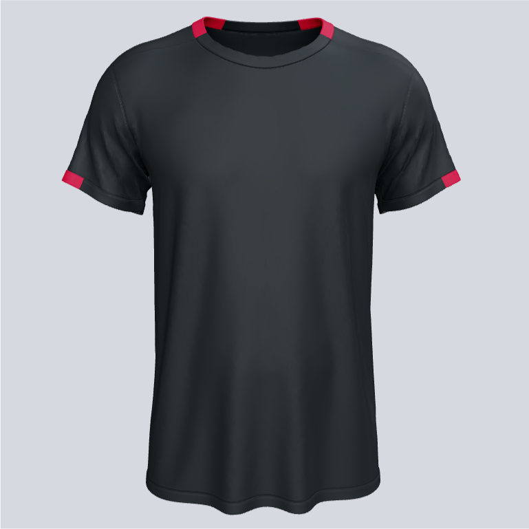 Regular-fit black jersey with red trim, breathable fabric, and clean modern style—ideal for teams, training, or everyday athletic wear.