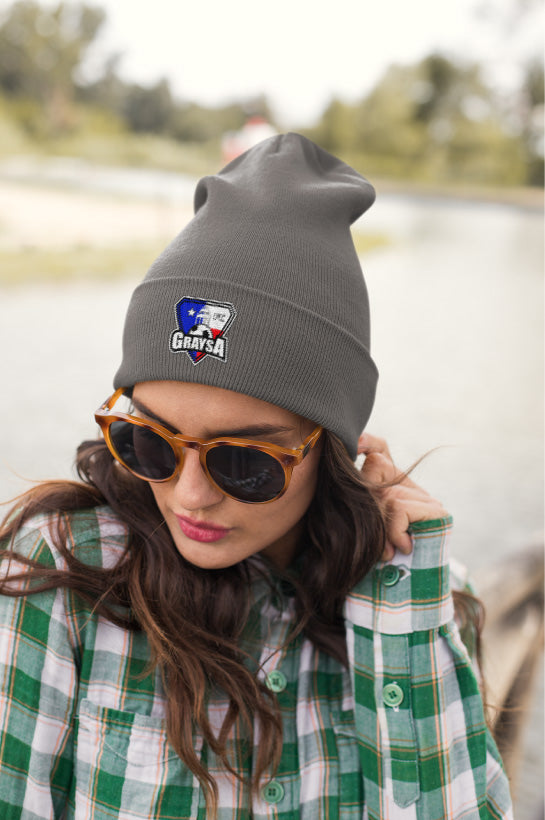 Stay warm and showcase your loyalty to GRAYSA's Arsenal program with the "Graysa Arsenal Beanie (Grey)." This comfortable navy blue knit beanie offers a snug fit, perfect for cooler days, and features a tastefully embroidered Arsenal shield logo on the cuff. It's a stylish and understated way to represent your club, whether you're on the sidelines cheering on your team like the dedicated GRAYSA players seen with their coach, or just out and about during the colder months. This beanie combines warmth, comfort, and dedicated team spirit.