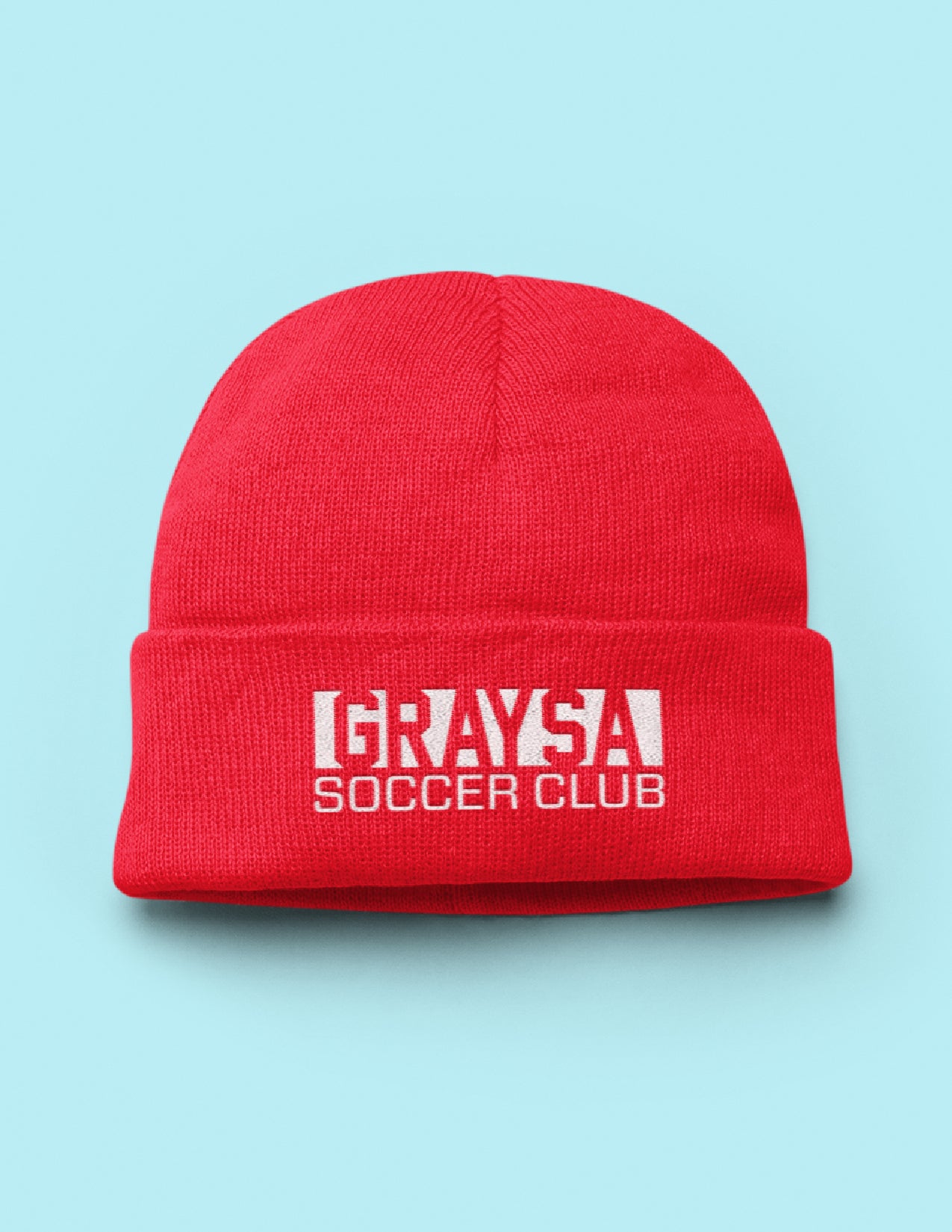 Keep warm and make a bold statement for your club with the "Graysa Beanie (Red)." This vibrant red knit beanie features the iconic "GRAYSA FUTBALL CLUB" lettering prominently displayed on the cuff, ensuring your allegiance is clear. Perfect for chilly match days or everyday wear during cooler seasons, it offers both comfort and a spirited look. It's an essential accessory for any passionate GRAYSA supporter, reflecting the dedication seen in the club's players and coaching staff.