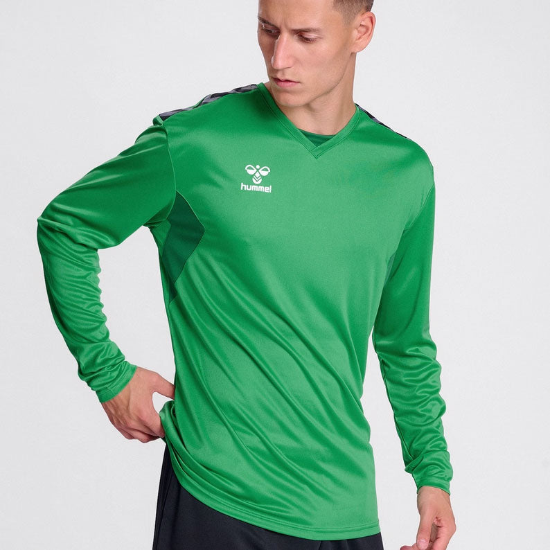 The Hummel Authentic PL Long Sleeve Jersey is made from 100% recycled polyester interlock fabric, this Hummel jersey offers outstanding shape retention and enhanced breathability. The Hummel AUTHENTIC PL JERSEY L/S features BEECOOL® treatment for improved moisture management with each wear and includes signature chevron tape on the shoulders for a stylish design upgrade.