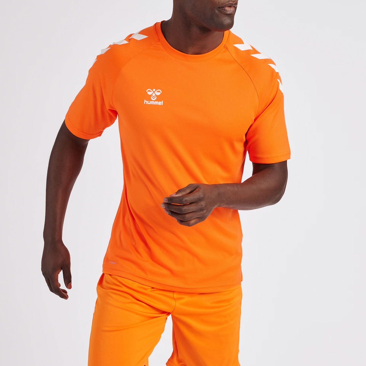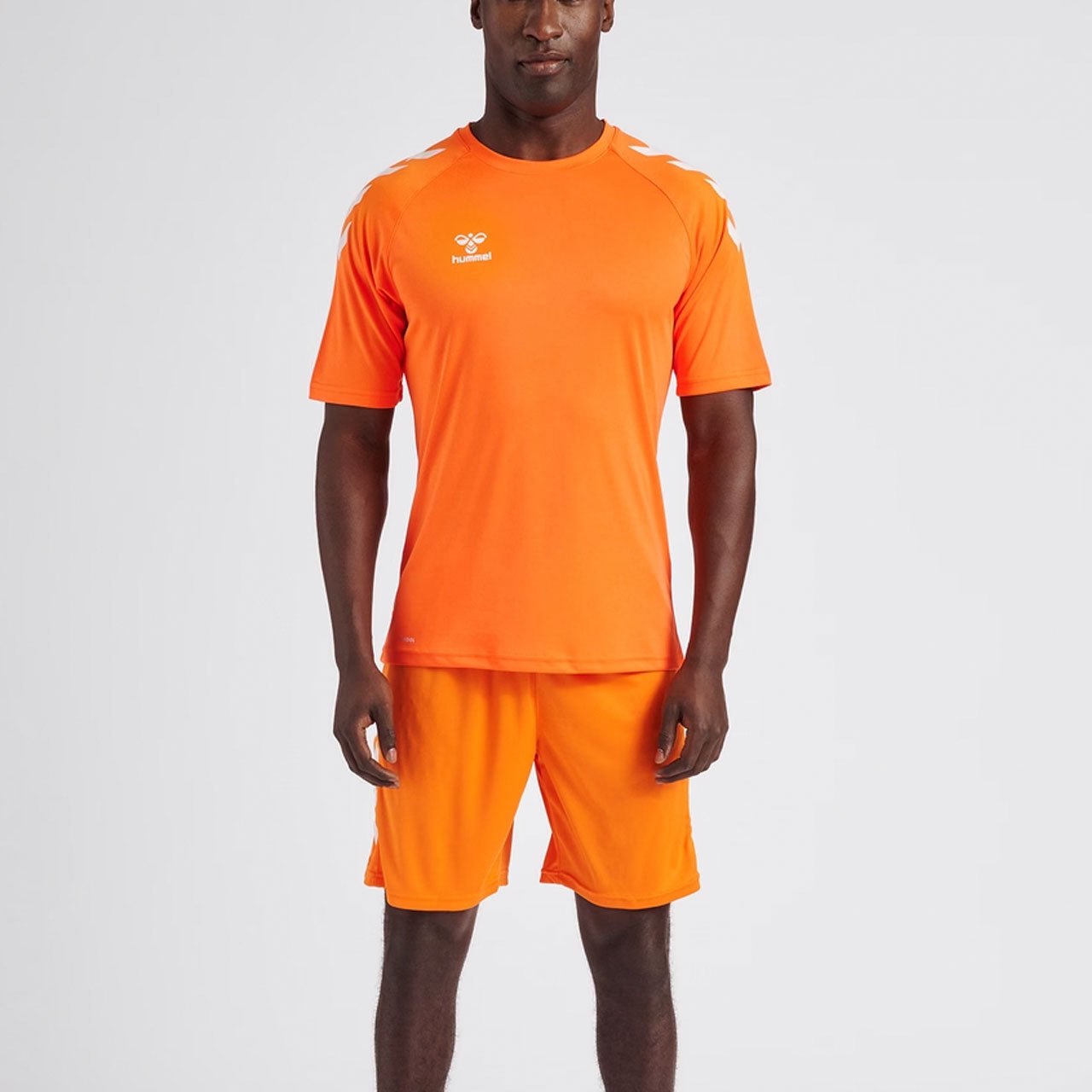 The Hummel CORE XK CORE POLY uniform is an excellent addition to your activewear collection. This hummel® short-sleeved jersey is made from polyester interlock fabric featuring BEECOOL® technology, ensuring you stay cool during workouts and enjoy durable wear for repeated use. The printed chevrons and logo provide a touch of style. Completed with matching shorts and socks.