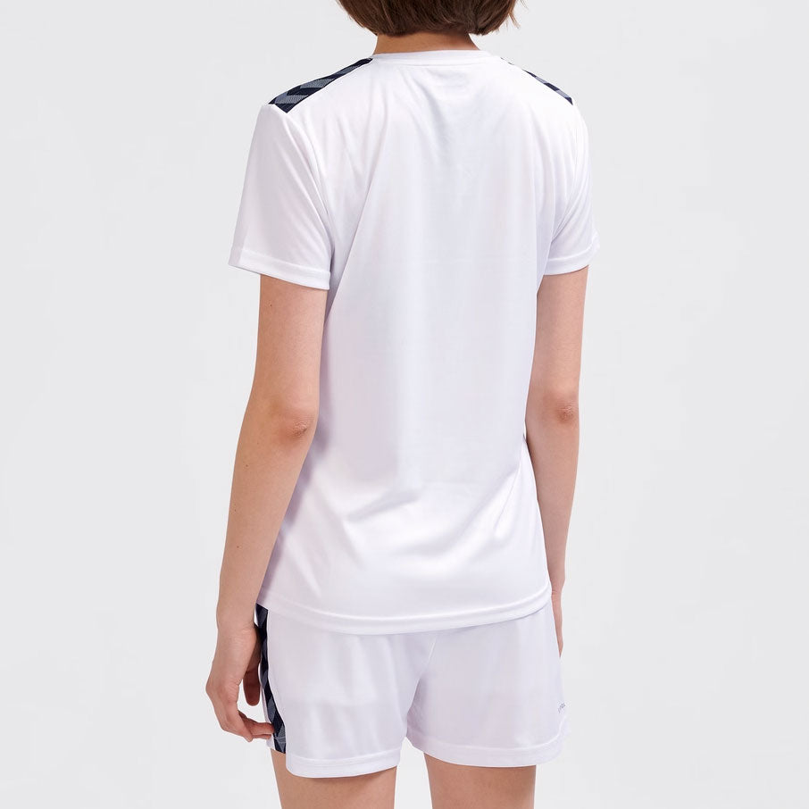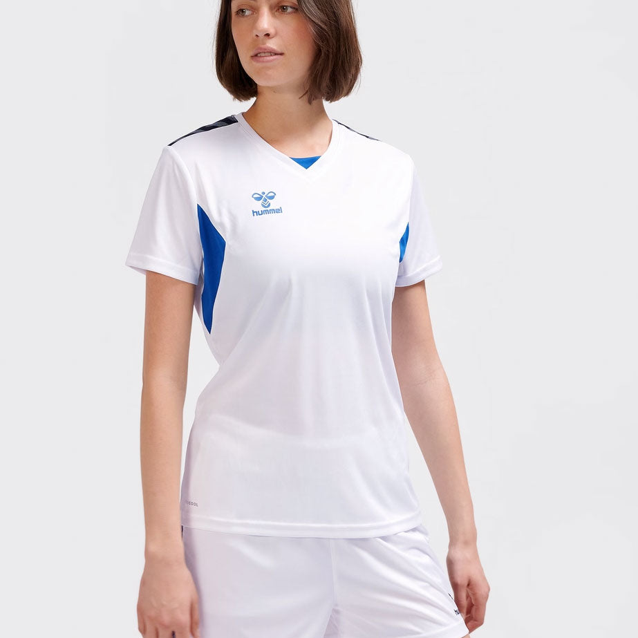 Hummel Women's Authentic PL Complete Uniform Set, crafted from 100% recycled polyester interlock fabric, this hummel Jersey offers outstanding shape retention and improved breathability. The Hummel Authentic PL uniform S/S features BEECOOL® treatment for enhanced moisture management with each wear and includes signature chevron tape on the shoulders for a sleek design upgrade, perfectly matching with the shorts and socks.