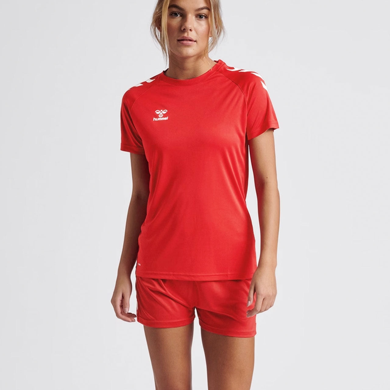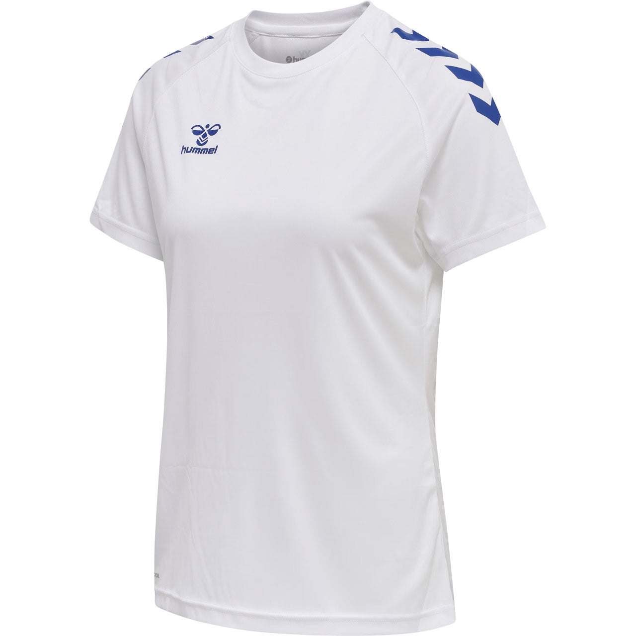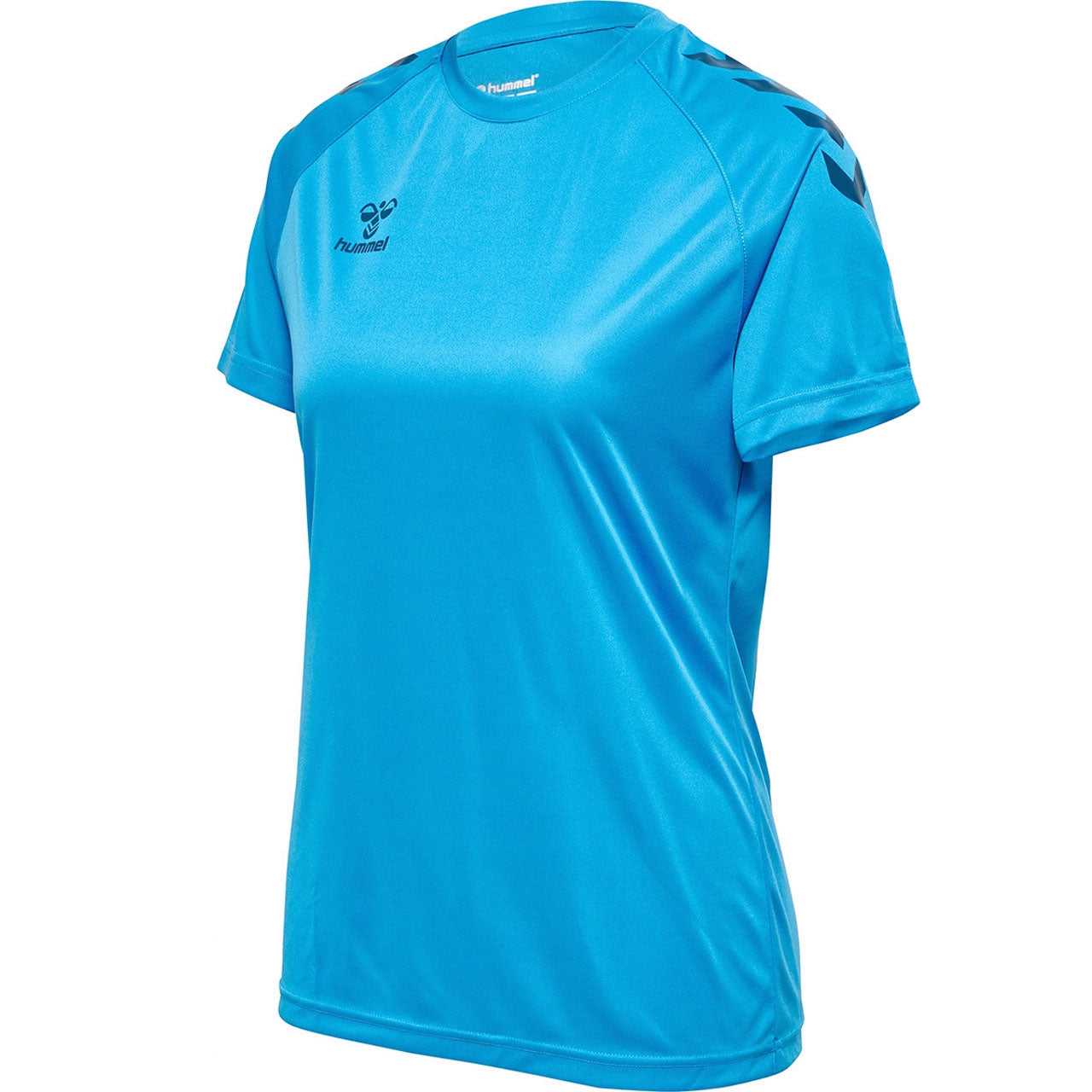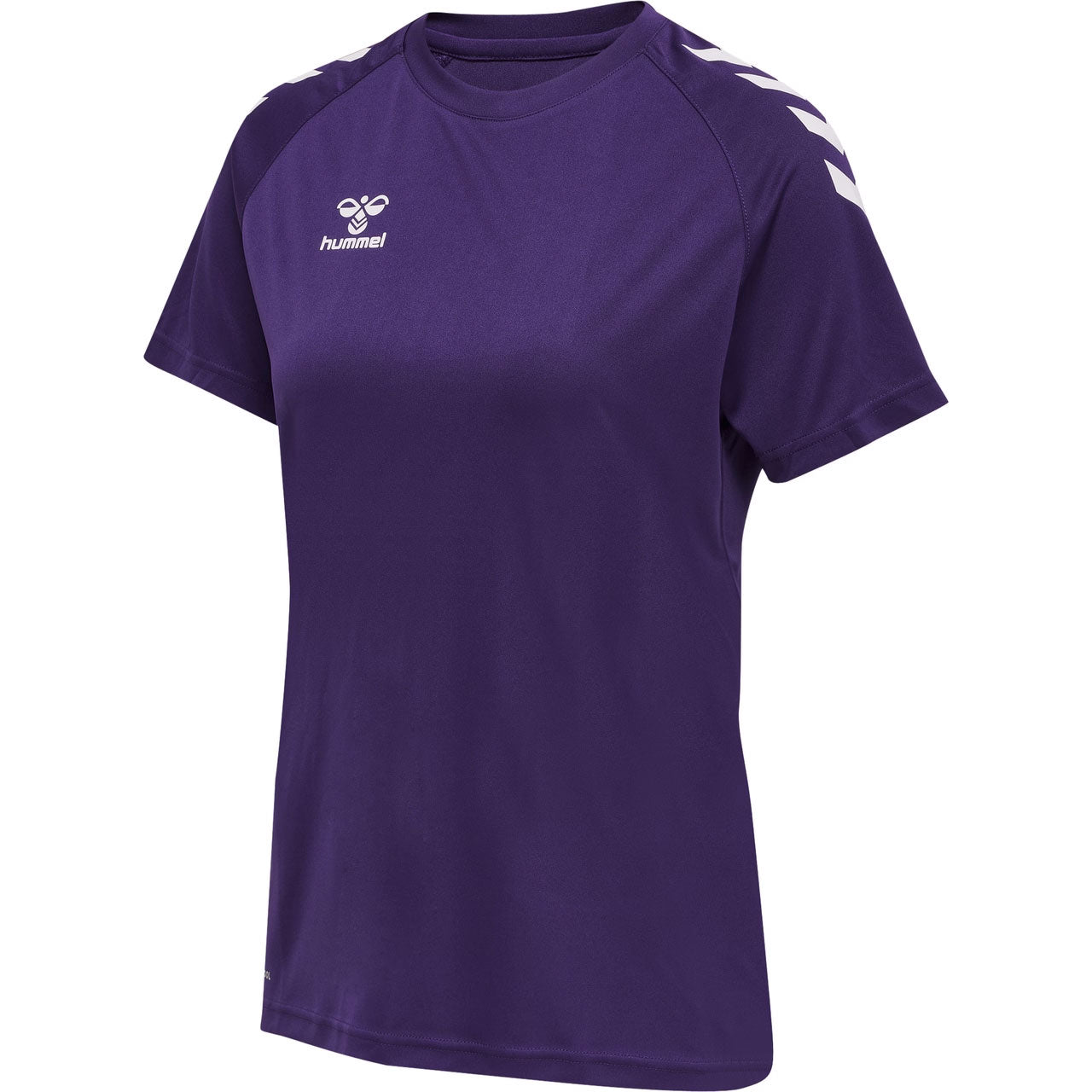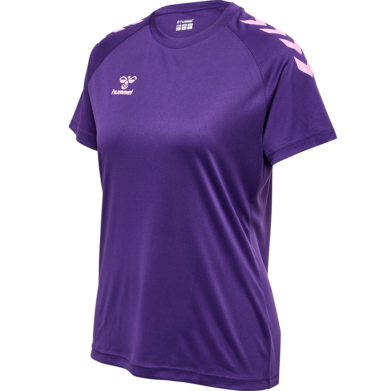 The Hummel Women's CORE XK CORE POLY Jersey is an excellent addition to your activewear collection. This hummel® short-sleeved jersey is made from polyester interlock fabric featuring BEECOOL® technology, ensuring you stay cool during workouts and enjoy durable wear for repeated use. The printed chevrons and logo provide a touch of style.