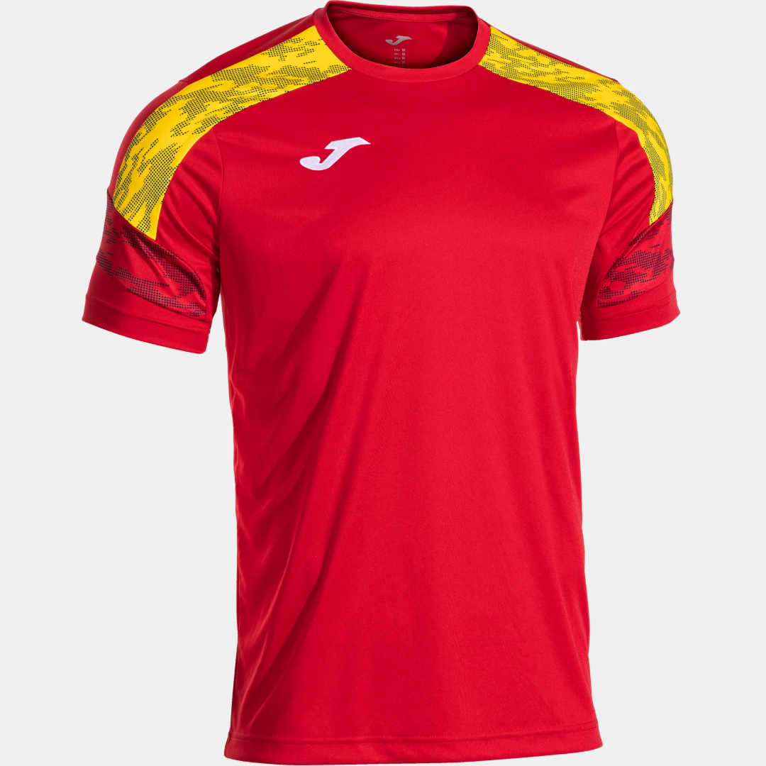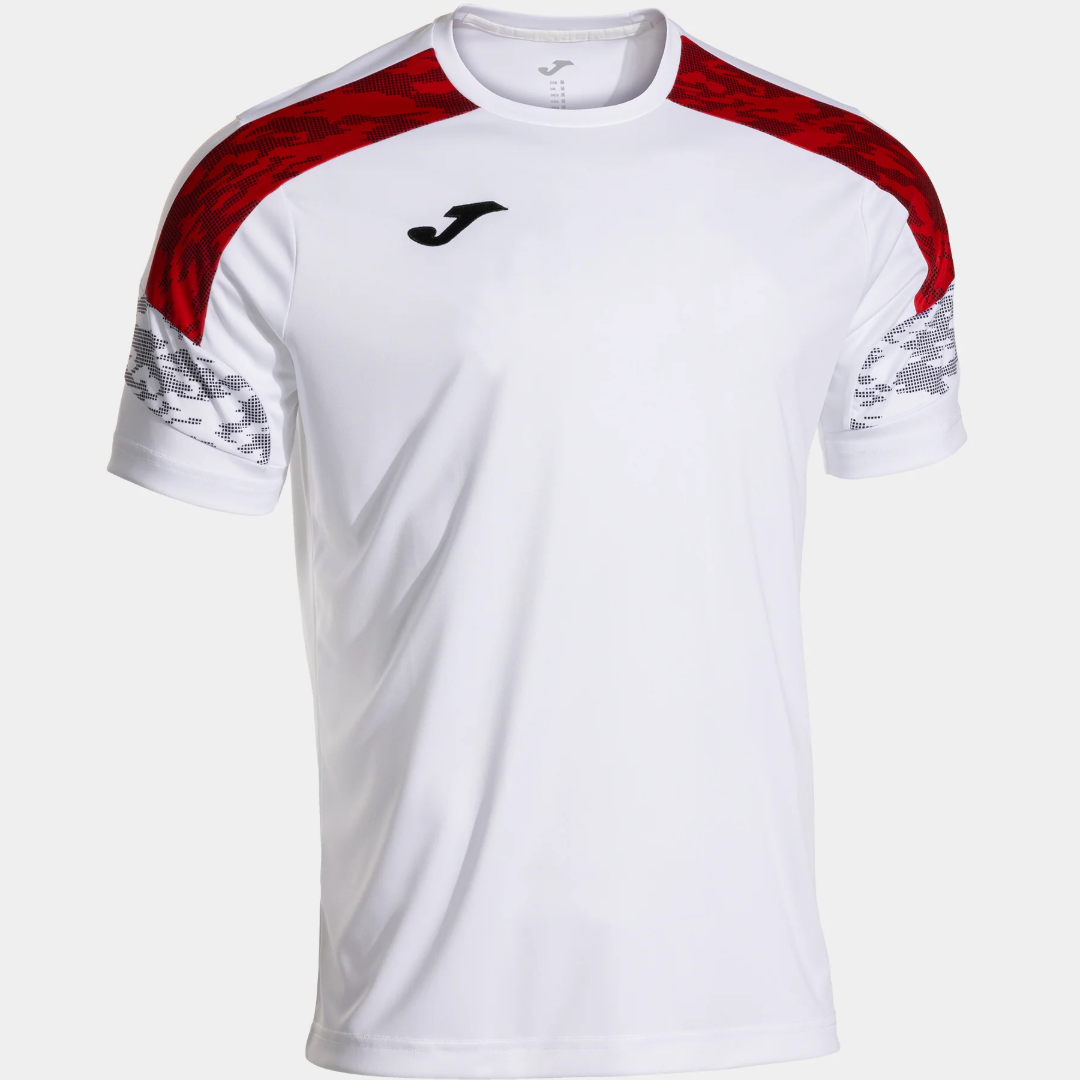 An elastic cover tape along the neckline enhances comfort and prevents irritation during movement, ensuring a secure fit throughout activity. The sublimated sleeve design adds a modern, dynamic look without compromising the garment’s lightweight construction. Finished with an embroidered Joma logo, this jersey blends performance functionality with clean, athletic style.