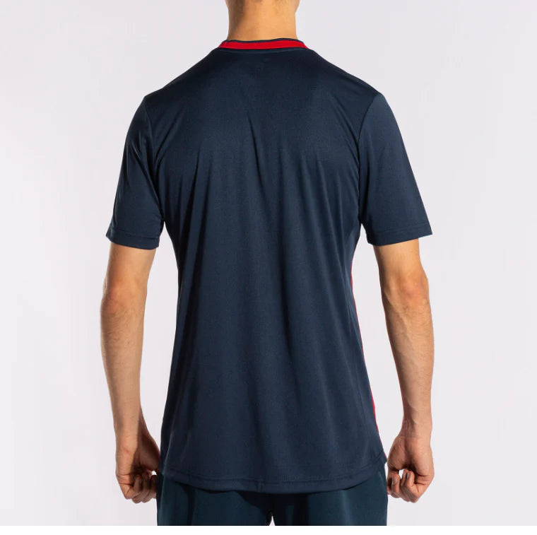 The Joma Europa VI Jersey is a short-sleeve soccer jersey with a classic round neck design. It's made from stretchy, lightweight, and durable fabric that's breathable enough to handle intense play. The jersey features Micro-Mesh panels placed strategically in sweat-prone areas to keep you cool and dry. It has a stylish sublimated pattern and a semi-fitted cut, so it looks sharp without restricting your movement. Made from 100% polyester.