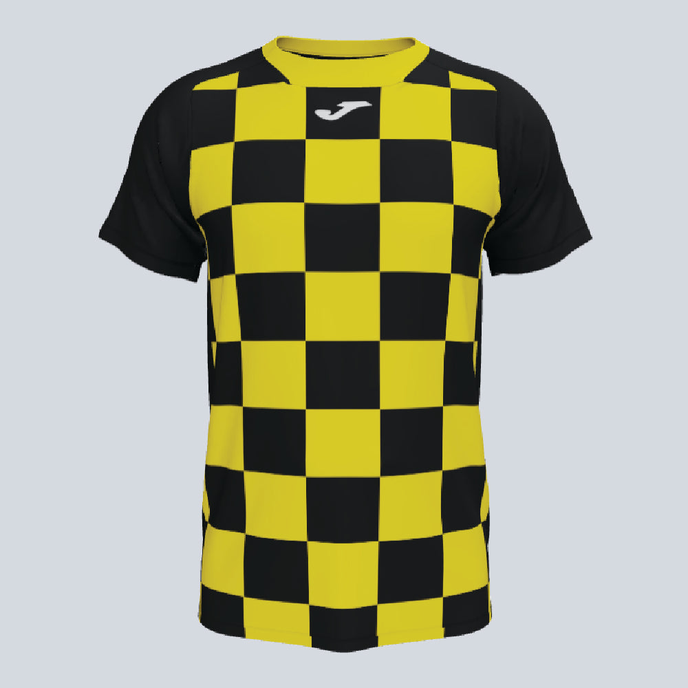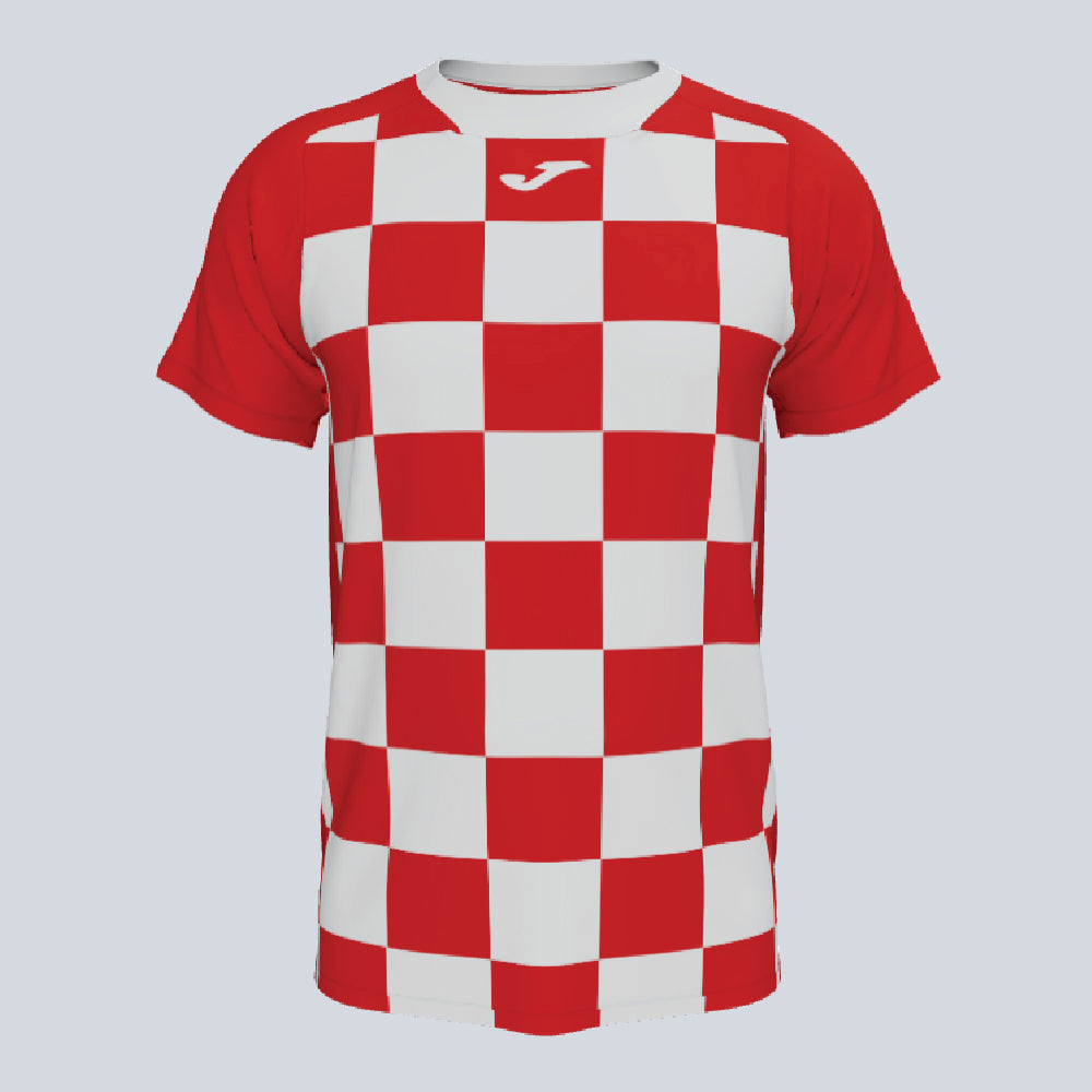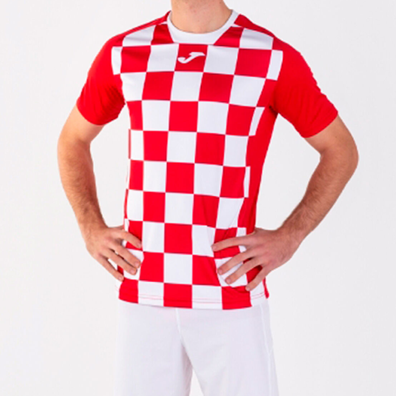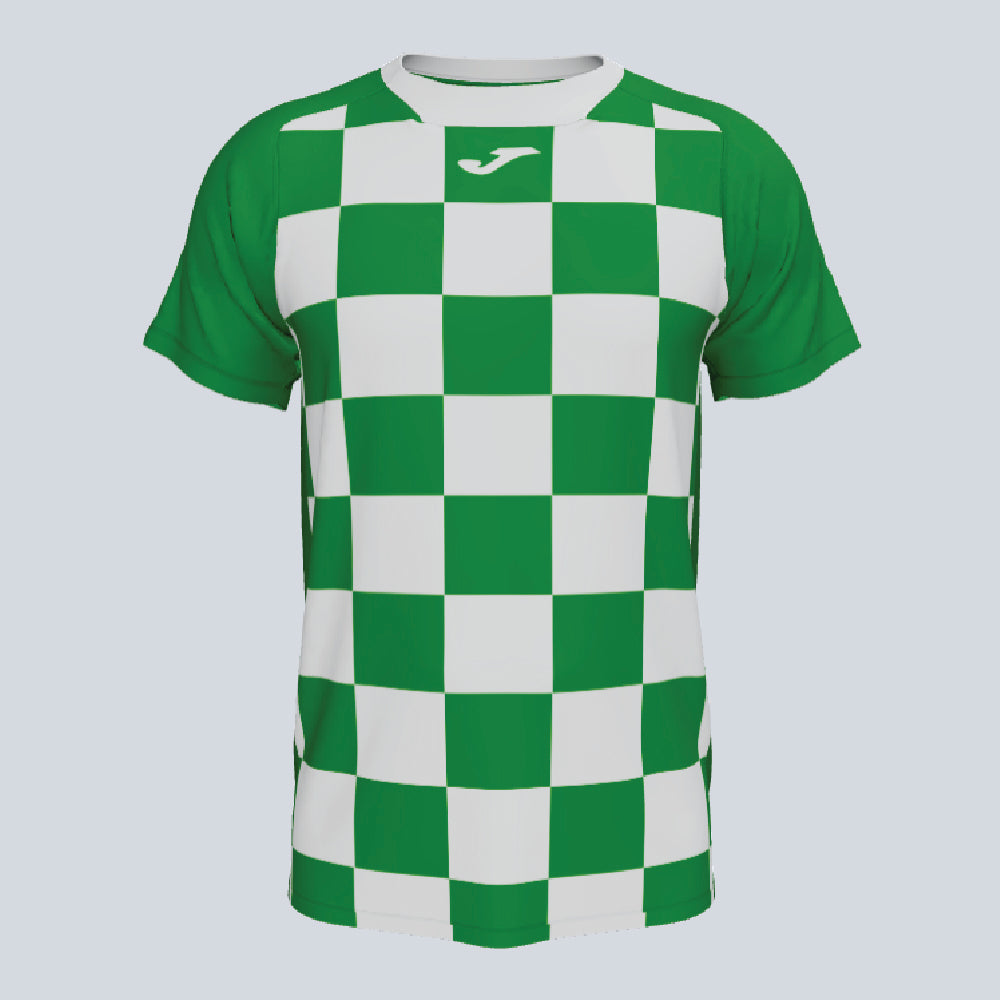 The Joma Flag II Jersey is ideal for soccer teams looking for a distinct and stylish uniform. It likely features Joma's moisture-wicking technology for player comfort. The jersey's design is expected to be unique, possibly incorporating a flag-inspired pattern, enhancing its visual appeal. Perfect for both matches and training, the Flag II Jersey is suitable for teams seeking a standout look with reliable performance capabilities.