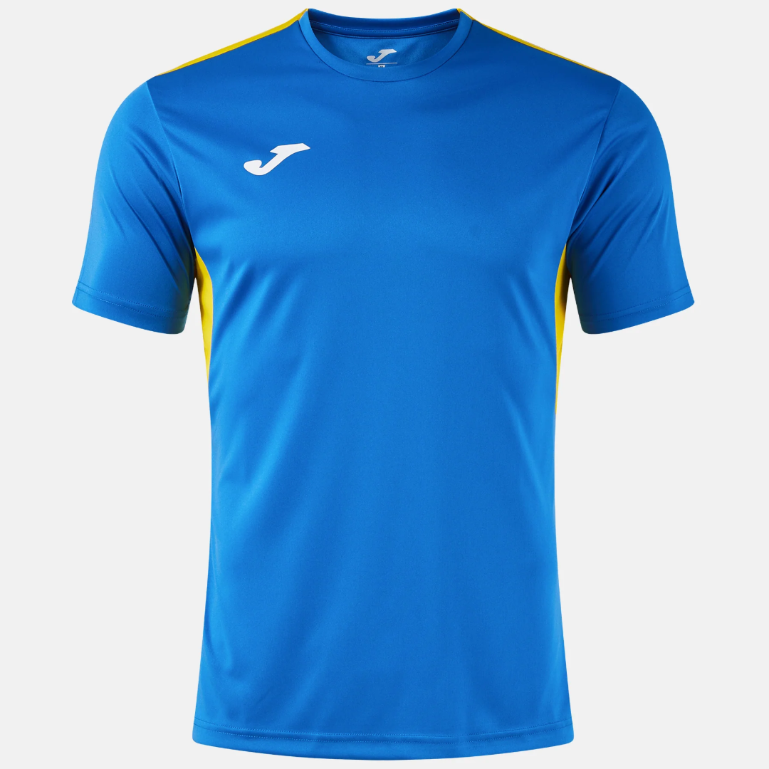 The semi-fitted silhouette provides a modern, athletic shape without restricting mobility, while the round neckline in base fabric ensures a smooth and comfortable fit. Finished with an embroidered Joma logo, this jersey delivers a clean, professional look built for performance.