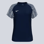 The Ladies Nike Academy 22 Jersey is engineered for performance and comfort. Incorporating Nike's Dri-FIT technology, it wicks away sweat to keep players cool and dry. The jersey's design focuses on mobility, with a fit that flatters and allows for a full range of motion. Durable and stylish, it's perfect for both competitive play and training, making it an essential for any female athlete's wardrobe.Lightweight with faint stripes across the front. Embroidered swoosh.
