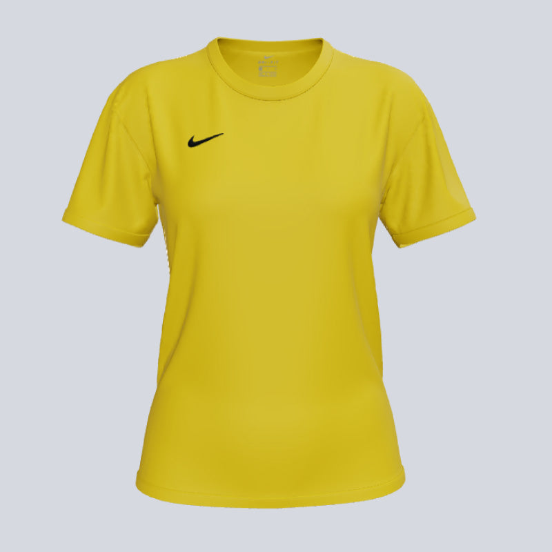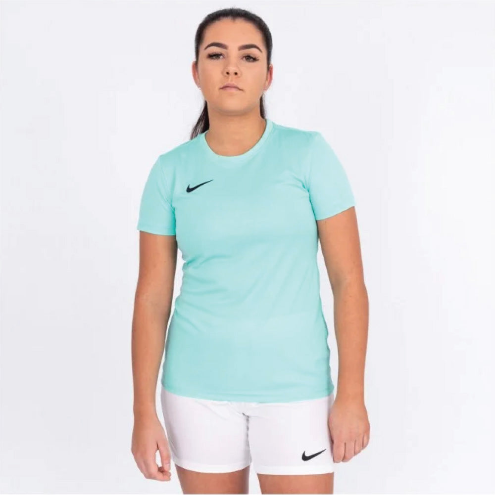 Embrace sporty elegance with the Ladies Nike Park VII Jersey. Engineered with Nike's advanced Dri-FIT technology, it ensures you stay dry and comfortable. Its sleek, feminine cut with a V-neck and short sleeves offers both style and ease of movement. Perfect for active pursuits or casual outings, this jersey combines durability with chic design, making it an essential piece for any wardrobe.