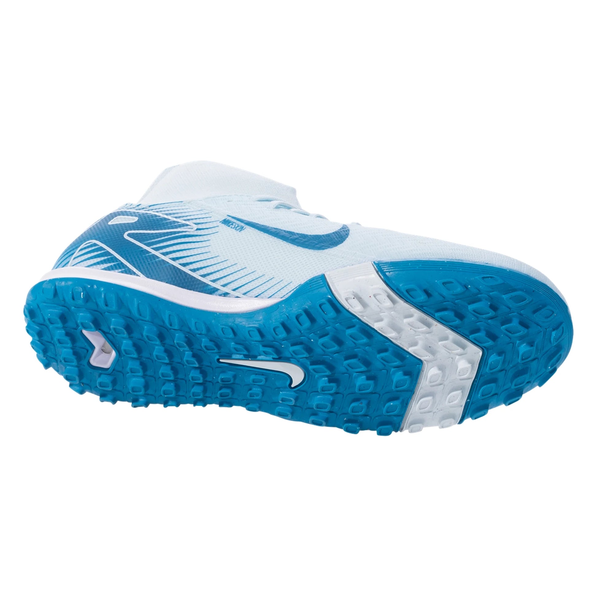 The upper of the Mercurial Superfly 10 Academy Turf is crafted from a lightweight and durable synthetic material that provides a snug, adaptive fit. This material is engineered to offer excellent touch and control, ensuring that players can manipulate the ball with precision during fast-paced play. The textured surface of the upper enhances grip on the ball, particularly during dribbling and shooting.