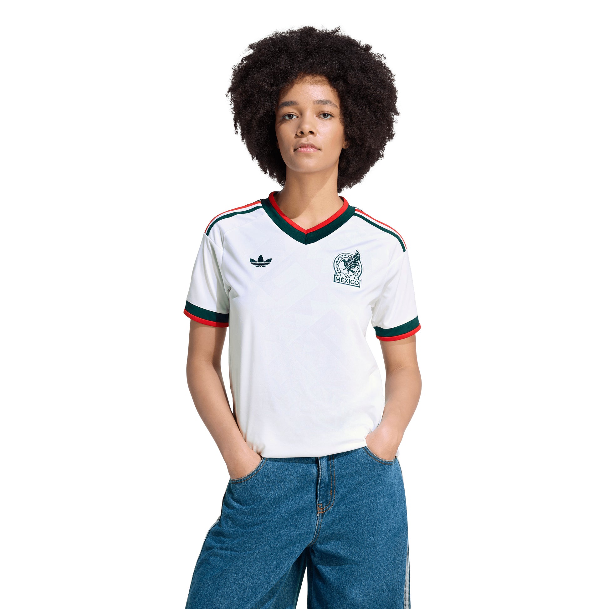 Crafted from 100% recycled polyester, the jersey features Adidas AEROREADY moisture-wicking fabric that keeps you cool and dry whether you’re cheering in the stadium, training, or enjoying casual wear. Its tailored fit ensures a flattering silhouette while allowing freedom of movement for all-day comfort. The bold Mexico national team crest and signature three-stripe detailing highlight your team pride wherever you go.