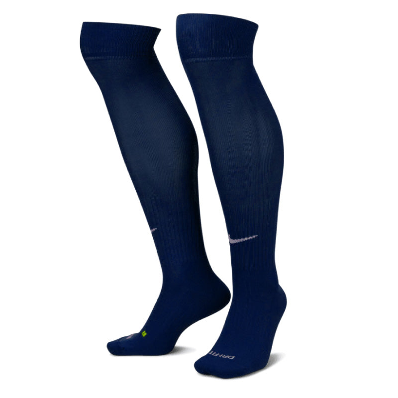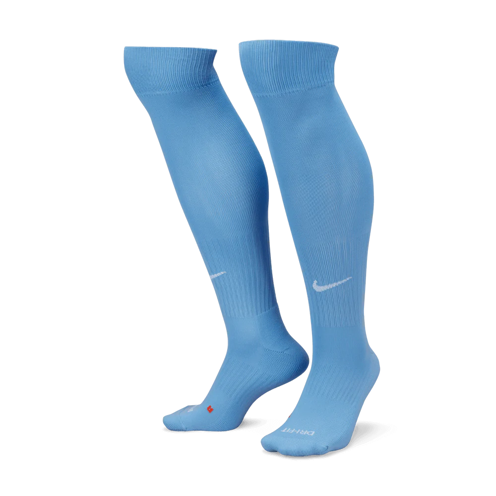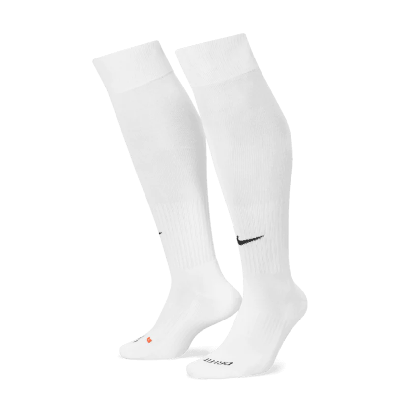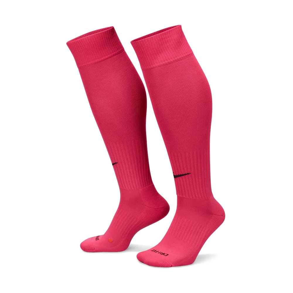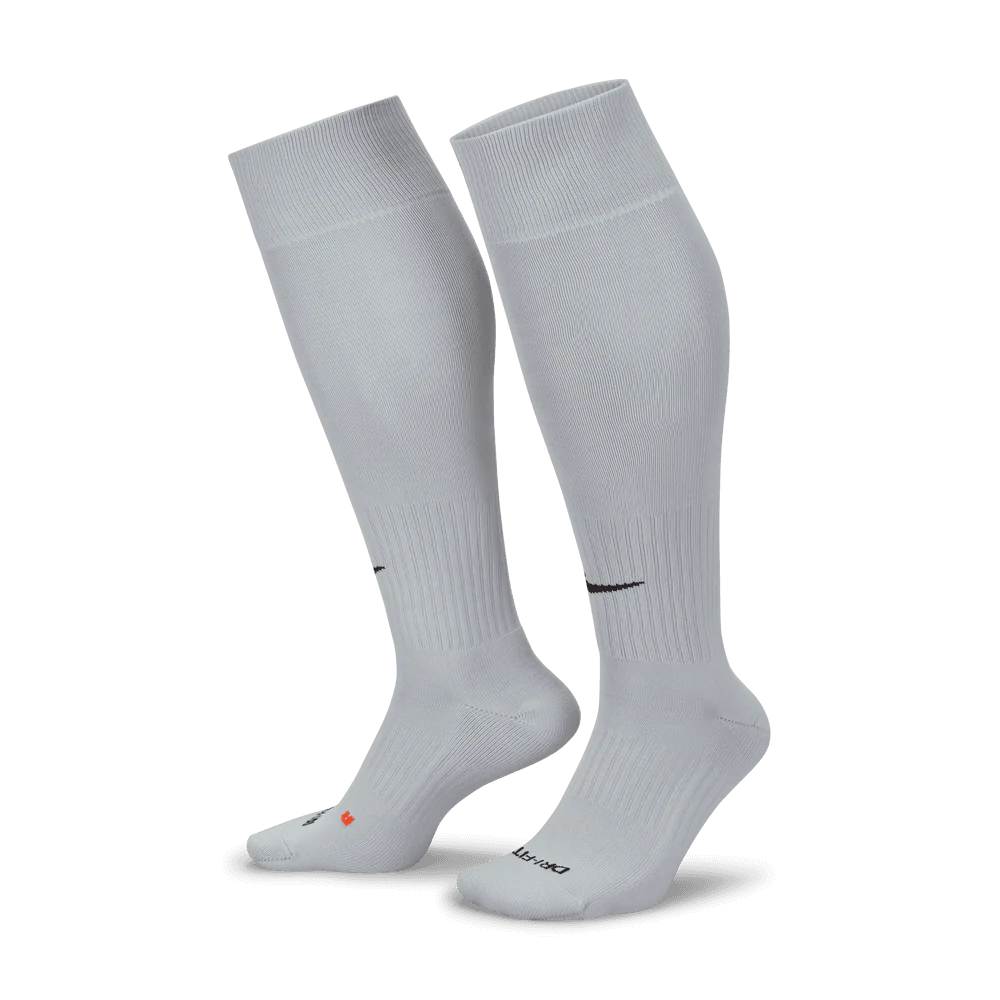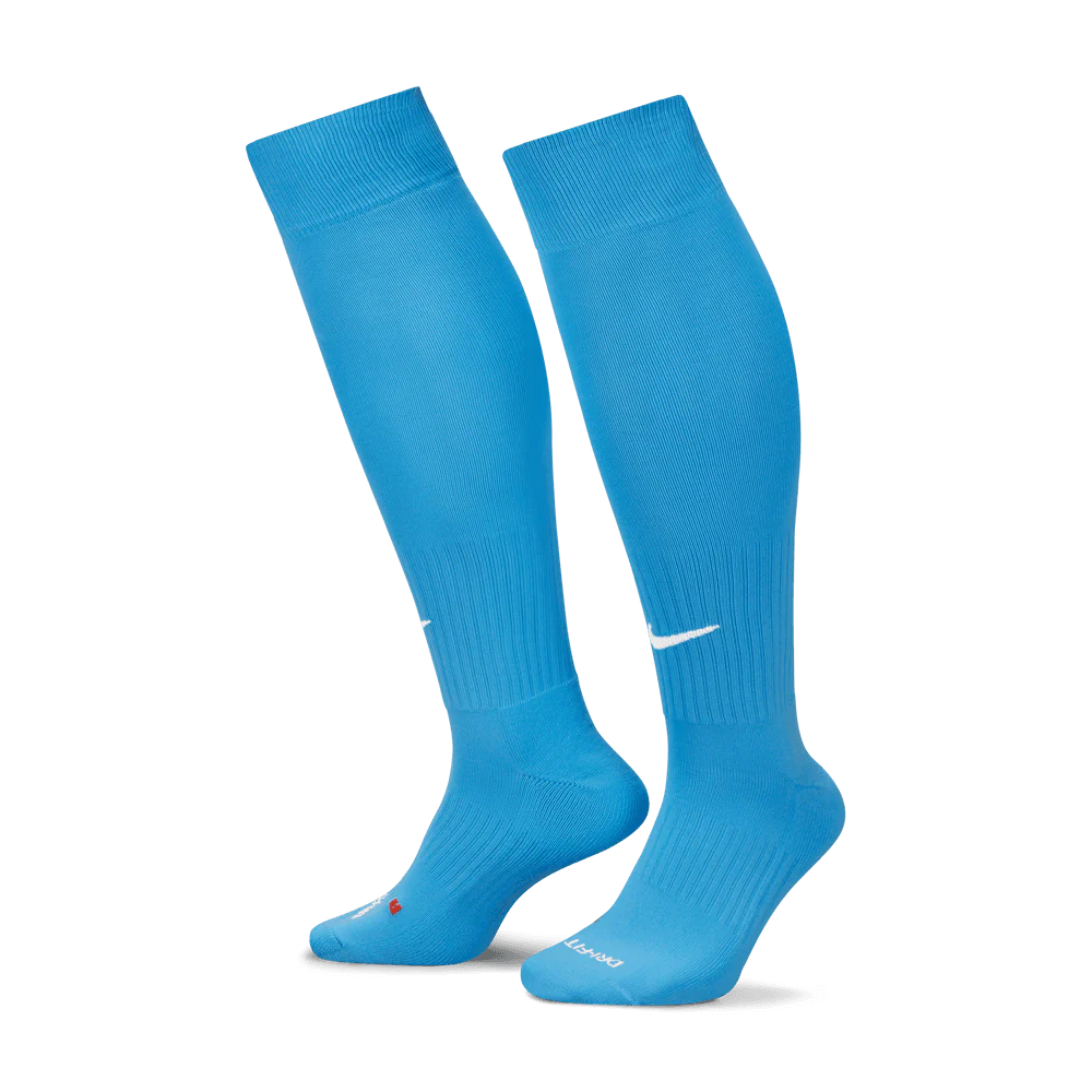 This unisex soccer sock has all the features you'll love in performance socks, perfect for your sports life. The Dri-FIT® fabric wicks away moisture to keep feet dry and cool. Anatomical left and right construction offers superior fit and cushioning. A reinforced heel and toe adds enhanced durability in high-wear areas. Arch support and a snug fit. Sold in single pairs. Made with 95% nylon/5% spandex.