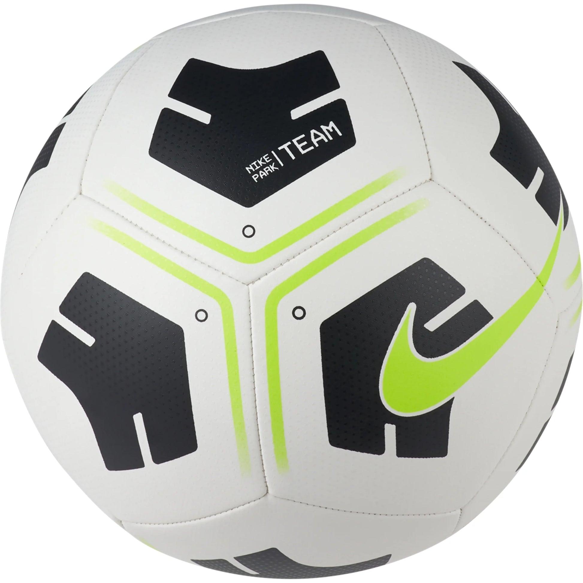 The Nike Park Soccer Ball has a durable surface with high-contrast graphics that are designed to make it easy to track across the pitch.