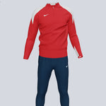 Equip your team for training with the 2024 Strike Training Suit. Featuring lightweight ribbed material along the back of the neck, shoulders, and arms, this suit offers enhanced flexibility and comfort. The body and sleeves are crafted from Nike Dri-FIT knit fabric, efficiently wicking sweat away to ensure players stay dry. Made with at least 75% recycled materials, this suit embodies sustainability, while the side panel construction utilizes an efficient pattern to minimize material waste.