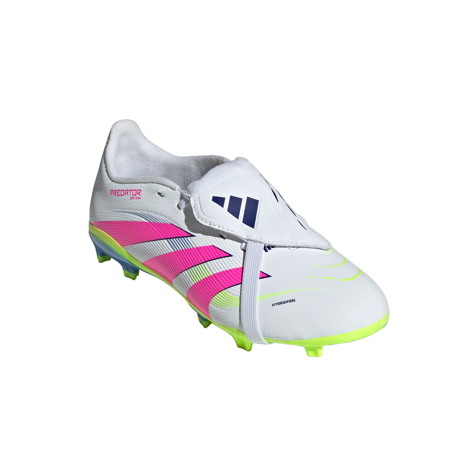 Go into every game knowing you'll score in adidas Predator League cleats crafted for goals. Their Hybridfeel upper incorporates an all-over 3D texture, a fold-over tongue and grippy Strikescale fins to help you control the soccer during strikes. A Controlplate outsole ensures you're in the right place at the right time on a variety of surfaces.