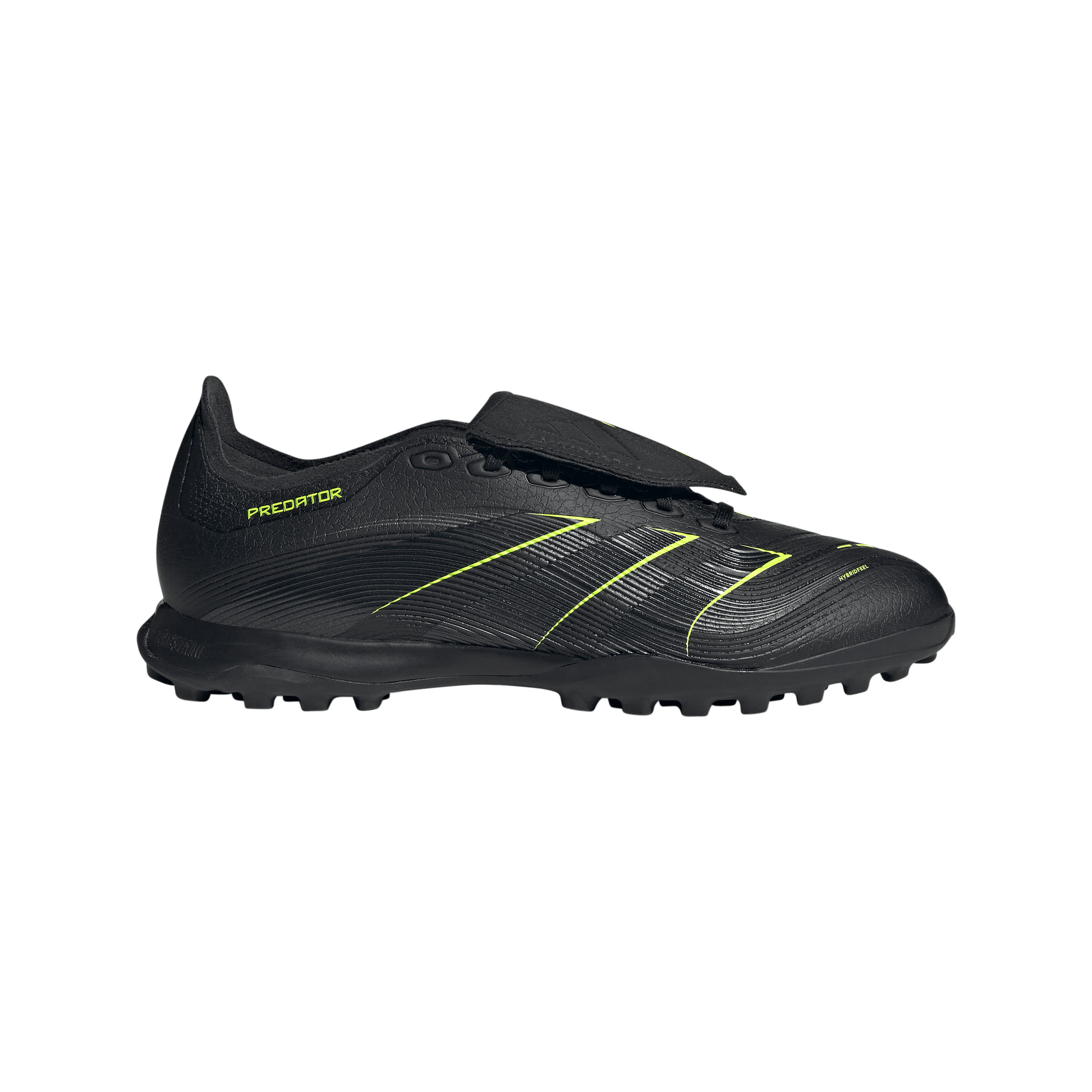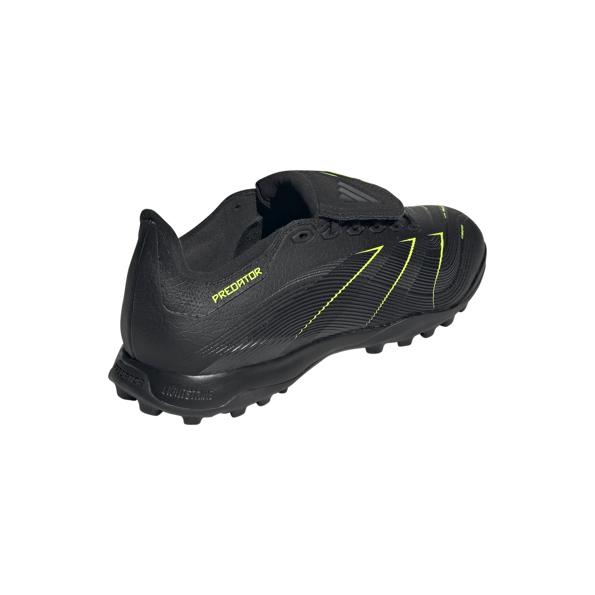 Discover the difference between aiming to score and knowing you will with adidas Predator boots that are crafted for goals. These League boots have a Hybridfeel upper that incorporates an all-over 3D texture, a fold-over tongue and grippy Strikescale fins to help you manipulate the football during strikes. A Lightstrike midsole and lug rubber outsole keep you comfortable and stable on artificial turf.