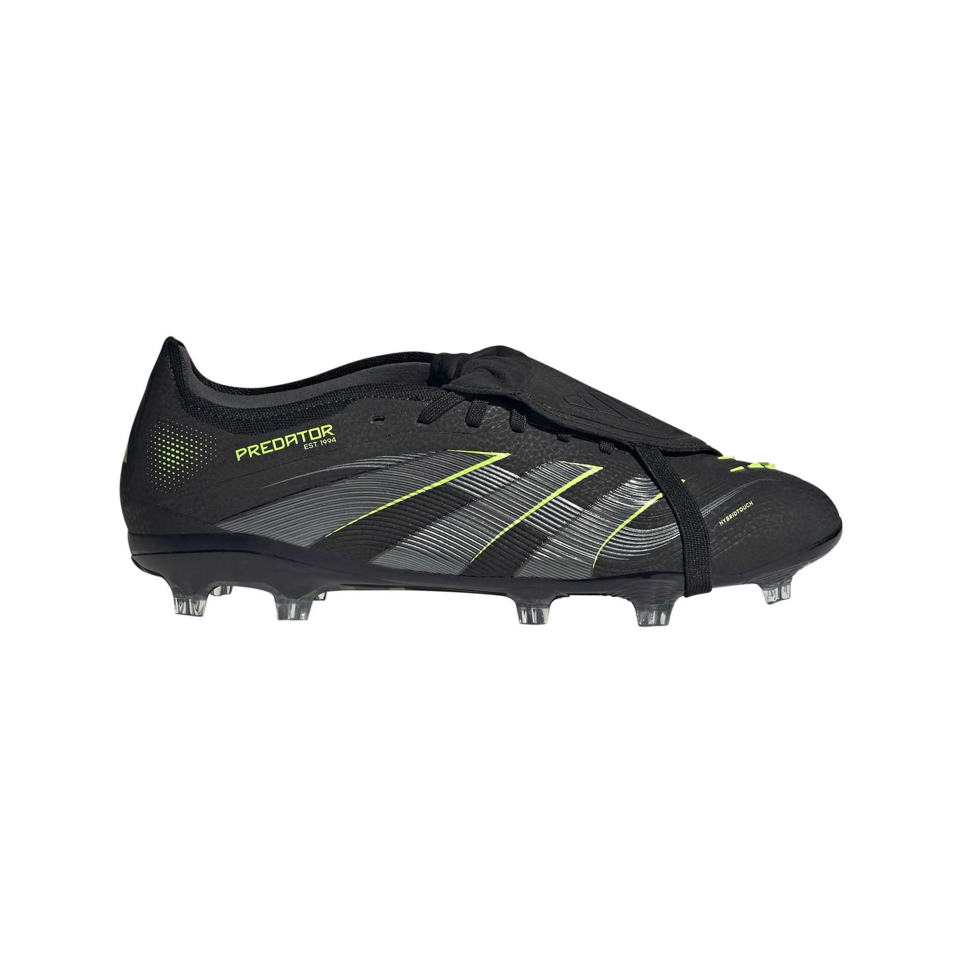 Discover the difference between aiming to score and knowing you will with adidas Predator boots that are crafted for goals. These Pro football boots have a flexible HybridTouch upper with a fold-over tongue and grippy rubber Strikeskin fins that help control every strike of the ball. Turn them over and you'll find a full-length Controlplate outsole designed to keep you stable on dry grass. #AdidasFootball #PredatorFT #JuniorFootball