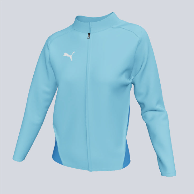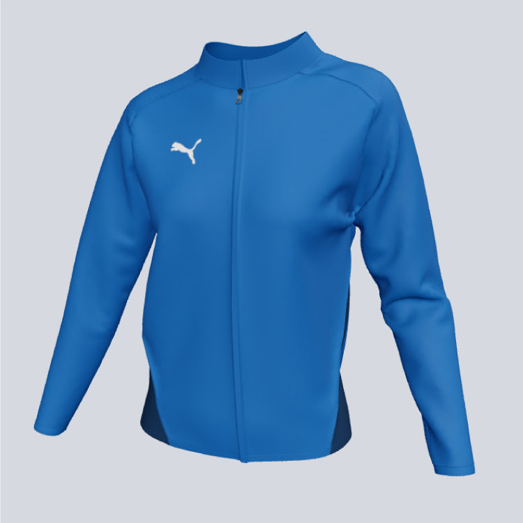 Stay sharp in the Puma Women's TEAM GOAL Training Jacket. This straight-cut full zip jacket features side zip pockets, breathable mesh inserts, and dryCELL technology that wicks away sweat. Made from 100% polyester, it delivers lightweight comfort and durability for all your training needs.