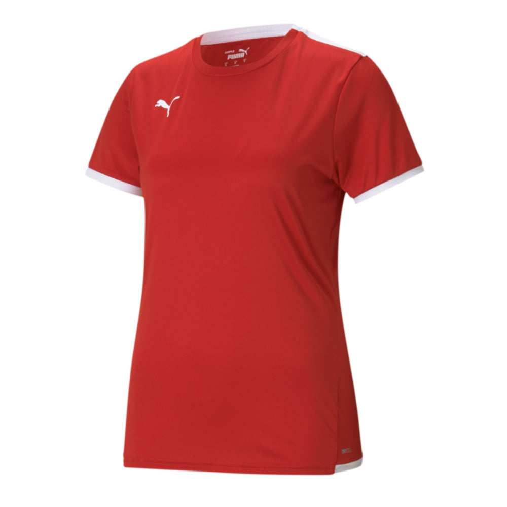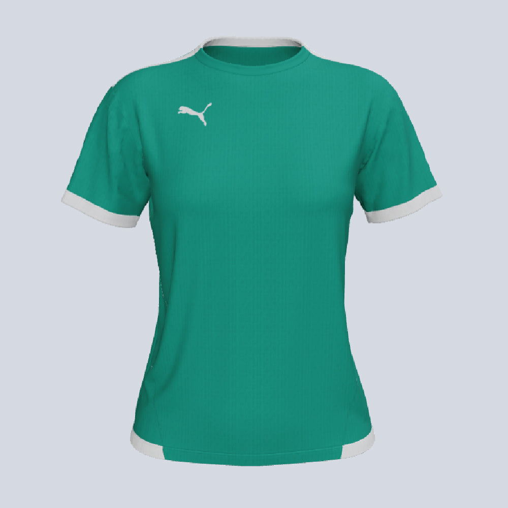 The Puma Liga 25 Women's Jersey is specifically designed for female soccer players, featuring Puma's advanced moisture-wicking technology for comfort and performance. Its sleek and athletic design offers a flattering fit, enhancing mobility on the field. Durable and stylish, this jersey is ideal for both competitive matches and training, providing a professional look and high-quality functionality.