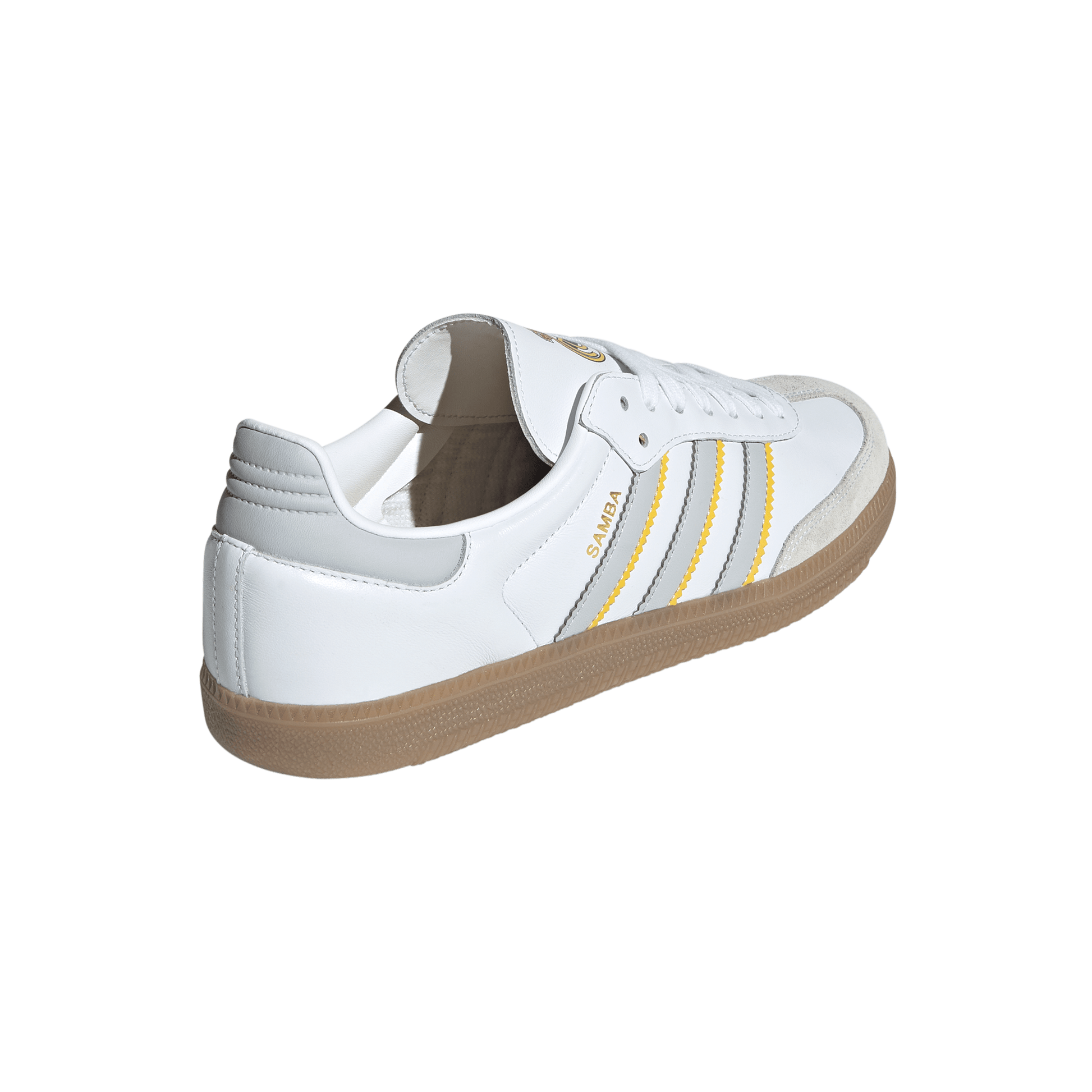 The Adidas Samba Real Madrid IC delivers the legendary look of the classic Samba with performance engineered for the demands of indoor play. Originally designed for indoor soccer in the 1950s, the Samba has become one of the most iconic silhouettes in sports and streetwear, and this licensed edition blends its heritage design with modern court-ready enhancements.